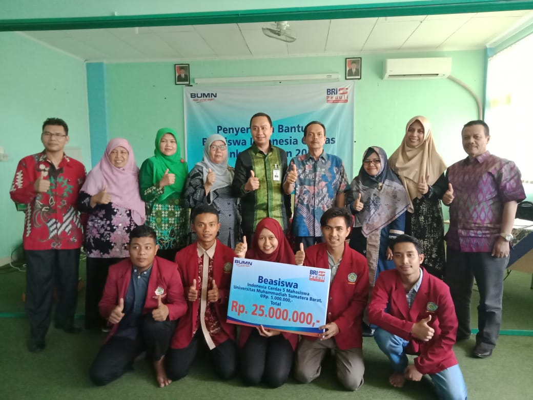 [HUMAS-FAI] UMSB terima beasiswa sebesar Rp. 25.000.000 dari Bank Rakyat Indonesia (BRI) pada Selasa, 11/12/18 di lantai II gedung pascasarjana UMSB. Beasiswa ini merupakan program BRI untuk mahasiswa-mahasiswa berprestasi.